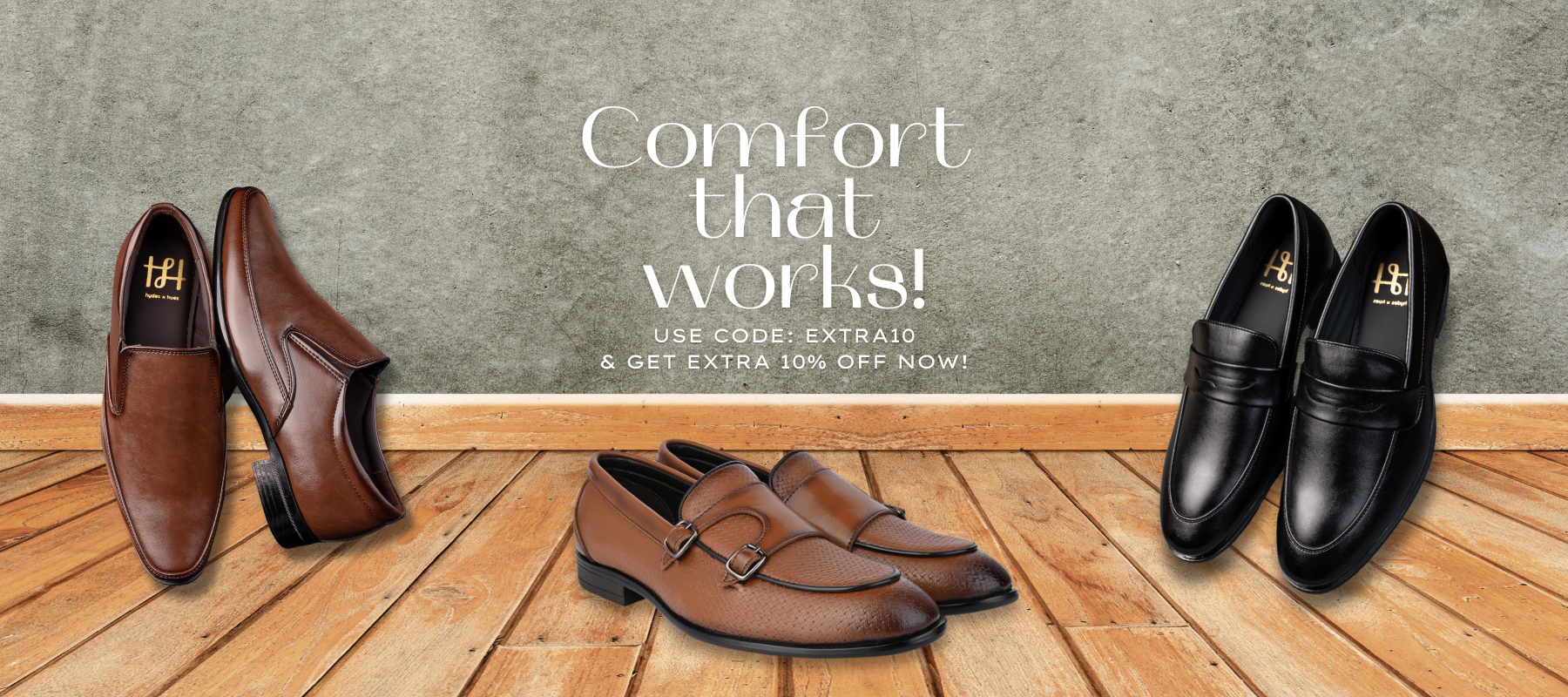 Swipe to see the difference in quality between the stiff and expensive shoes in the market versus our handcrafted comfort offering available at an affordable price!
