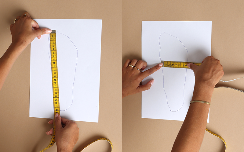 Stand with your heel resting firmly against the wall and your weight evenly distributed. Place your heel at the edge of the paper and trace the outline of your foot. Ensure the heel and the paper start from the same point.